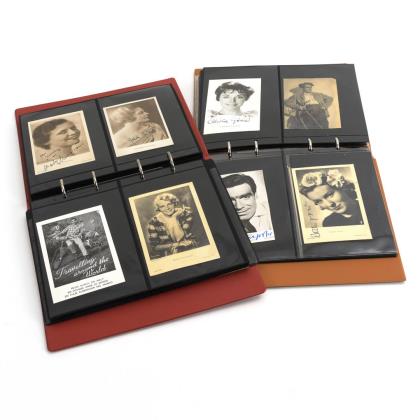 2 Alben mit signierten Porträtfotografien von Schauspielern und Sängern