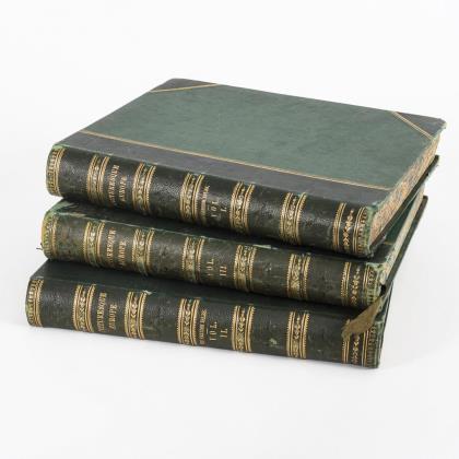 Band 1 und 2: "The British Isles", mit je 288 Seiten. Band 3: Normandie and Brittany, Italien Lakes, The Passes of the Alpes, The Cornice Road, Forest of Fontainbleau, The Rhine, Venice, The Pyrenees, Rome and its Environs, The Bernese Oberland, Spain. 28 Seiten. Mit einer Vielzahl von Stahl- und Holzstichen. Grüne Halblederprachtbände mit Goldprägung
