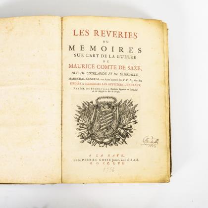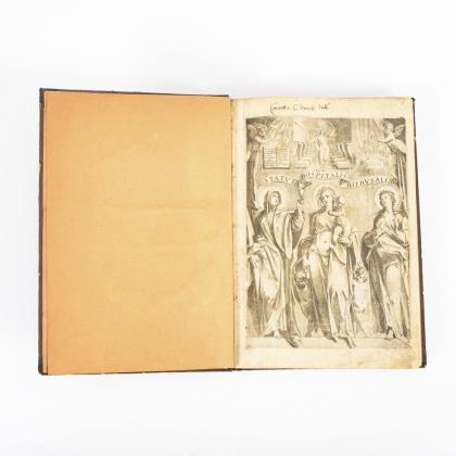 Titel, Titelkupfer, (44), 532, 110, (6) Seiten und 22 Seiten beigebundene Drucke. Mit ganzseitigen Kupferstichen, Text in Rot und Schwarz gesetzt. Goldgeprägter Ledereinband, Goldschnitt mit Prägemuster