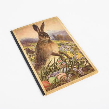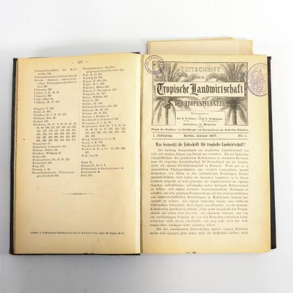 66 Seiten mit vielen Illustrationen, darunter auch großformatige Farblithografien. Halbleineneinband