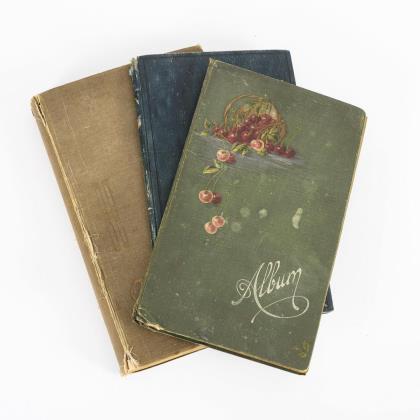 Mit ca. 662 Ansichtskarten Europa, Künstlerkarten u.a. In "Album" mit Kirschen; in blaugrünem "Album"; in braunem Einband