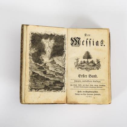 2 Bände in einem Buch, einschließlich "Von der Nachahmung des griechischen Sylbenmasses im Deutschen" und "Vom deutschen Hexameter". Kupferstich, Titelblatt, (22), 184, (22), 160, (18), 254 Seiten. Pappeinband, Rotschnitt