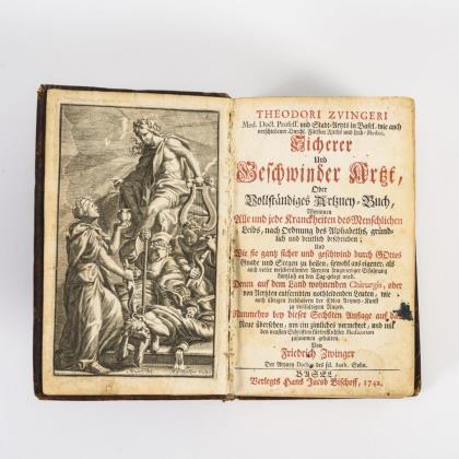Porträtkupfer, Titelblatt, (12), 746, (70), Titel Paradiesgärtlein, (14), 230, (10) Seiten. Im Ledereinband, Blauschnitt