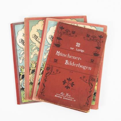 Drei Bände mit farbigen Illustrationen. / "22 nur lustige Münchener Bilderbogen", im roten Jugendstileinband