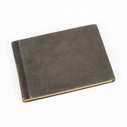 Ansichtskarten mit verschiedensten Motiven, sehr abwechslungsreich. In grauem Album mit Fliederblüte