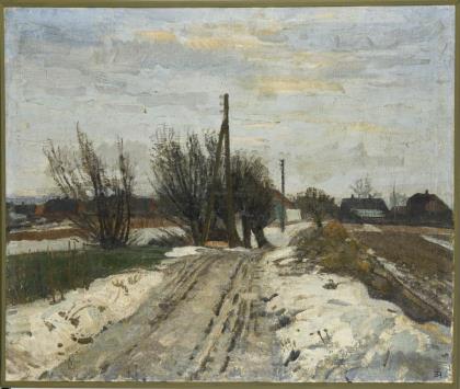 Schneeschmelze vor dem Dorfe