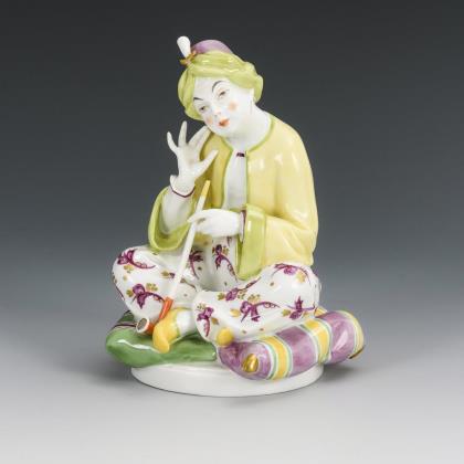 An einem Duftgefäß hockende orientalische Tänzerin