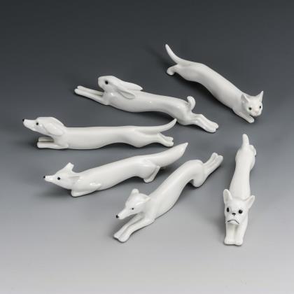 Messerbänkchen als Hase, Dackel, Fuchs, Windhund, Boxer und Katze