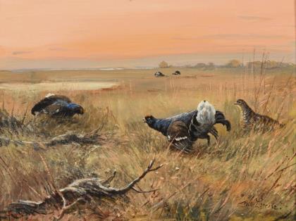 Die Vögel auf weiter Ebene im Wettstreit um ein nahe stehendes Weibchen