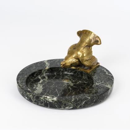 Marmorschale mit Bronze-Auerhahn