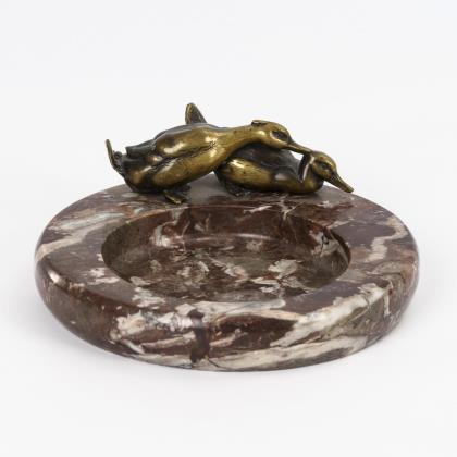 Marmorschale mit 2 Bronze-Enten