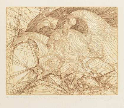 Dynamisches Werk mit Pferd aus geraden und gebogenen Linien in stiltypischer Manier des Künstlers