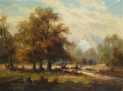 Die Arbeiter bei der Pause im Schatten der Bäume nahe dem Watzmann