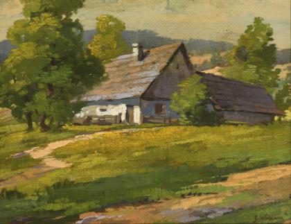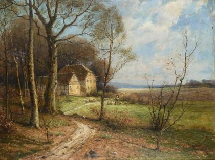 Monogrammist "H.N.": Bauernhof in weiter Landschaft