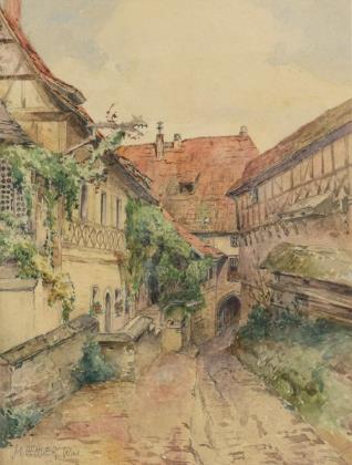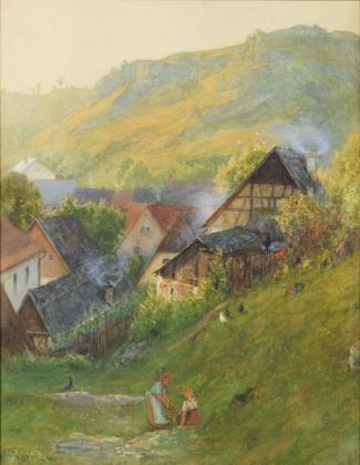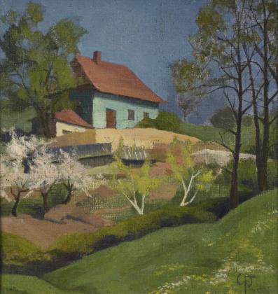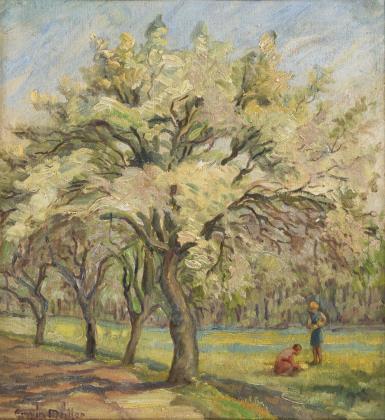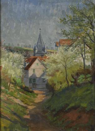 Weimarer Maler: Blühende Obstbäume am Dorfrand