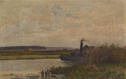 Impressionistisch gemalte Bäume am Ufer unter bedecktem Himmel