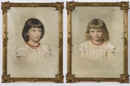 Zwei Kinderporträts seiner Töchter in dekorativen Rahmen