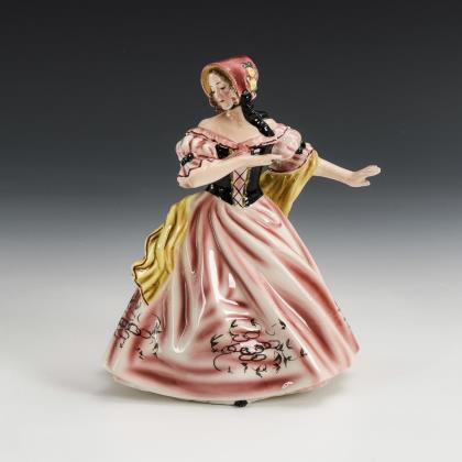 Tanzendes Biedermeier-Mädchen in rotem Kleid und gelbem Tuch