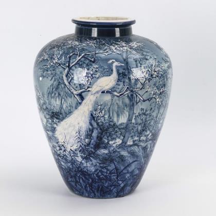 Balusterform mit asiatisierender Landschaft, Kirschblüten und einem weißen Pfau