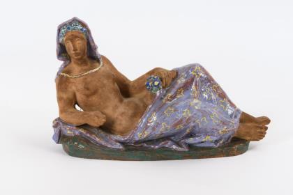 Liegende Terrakotta-Frauenplastik