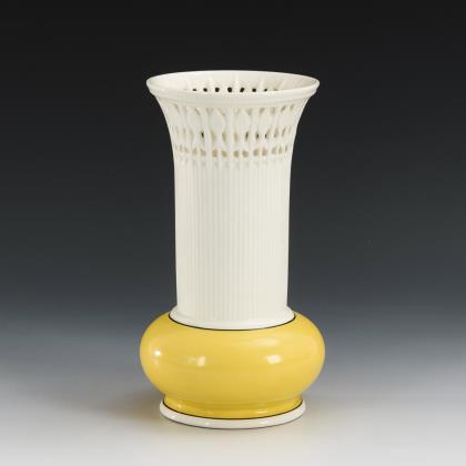 Stangenvase mit geriffeltem und durchbrochenem Hals sowie niedrigem Kugelbauch