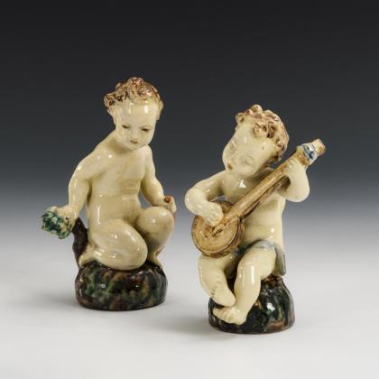 Kniender Putto und Putto mit Gitarre