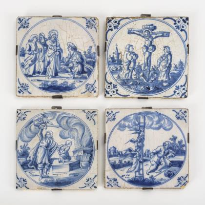 4 barocke Fayence-Fliesen mit christlichen Szenen