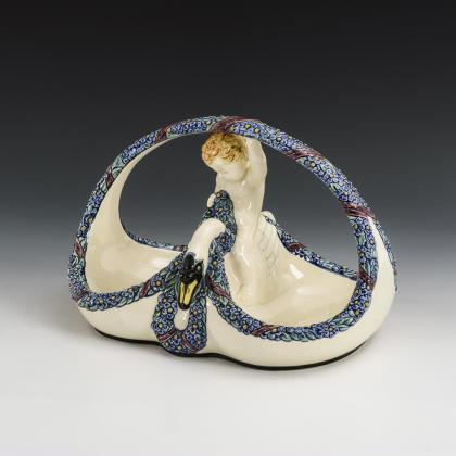 Korb mit Putto und Schwan
