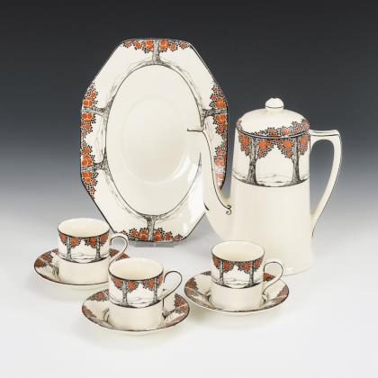 8-teiliges Jugendstil-Déjeuner mit Baumdekor