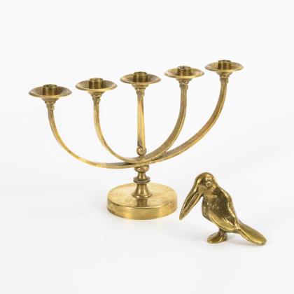 5-flammiger Kerzenleuchter und Vogelskulptur Art déco