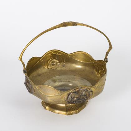 Gefußte Schale mit Rosenrelief und scharniertem Henkel