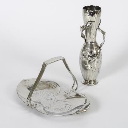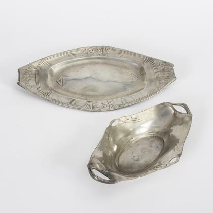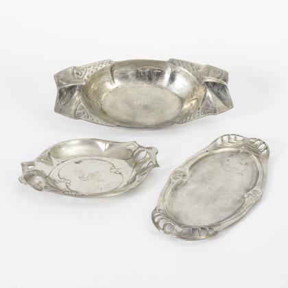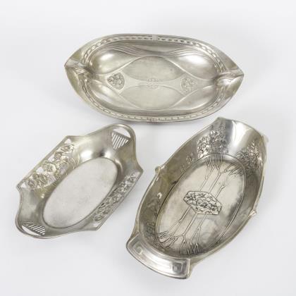 2 Schalen und 1 Tablett Jugendstil-Silberzinn