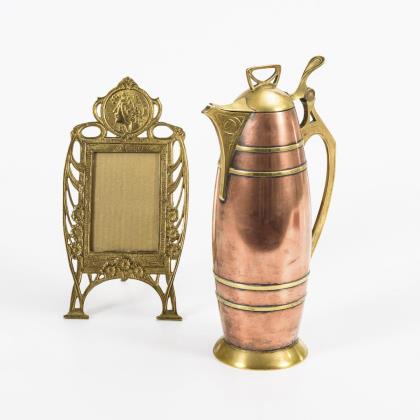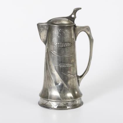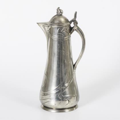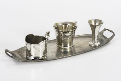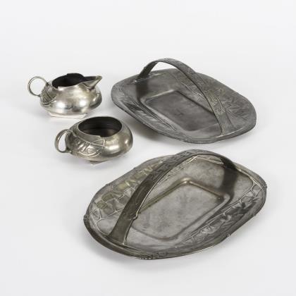 2 Tabletts und 1 Kännchen Jugendstil-Zinn