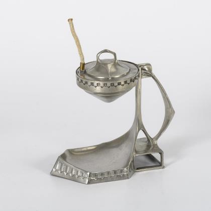Streng geometrisches Relief an der Zigarrenlampe mit Streichholzfach an der Fußschale