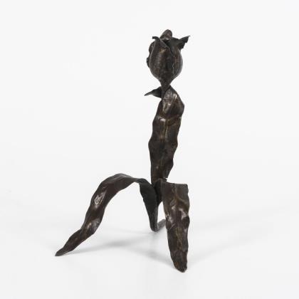 Blattförmige Schale mit Distelblattrelief sowie vollplastische Frauenfigur mit dem gebogten Blattstängel als Henkel