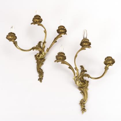 Paar 3-flammige Wandleuchter im Rokoko-Stil