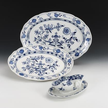 2 Zwiebelmuster-Platten und 1 -Sauciere