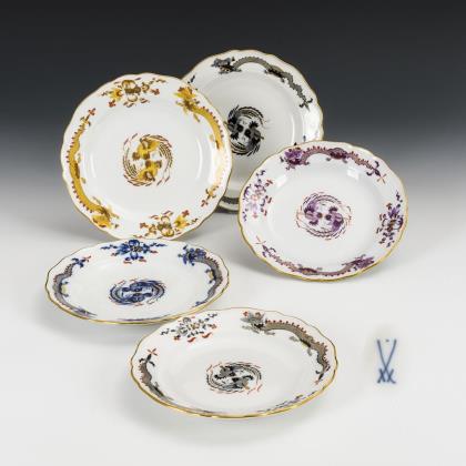 6 Durchbruchteller mit Drachenmalerei