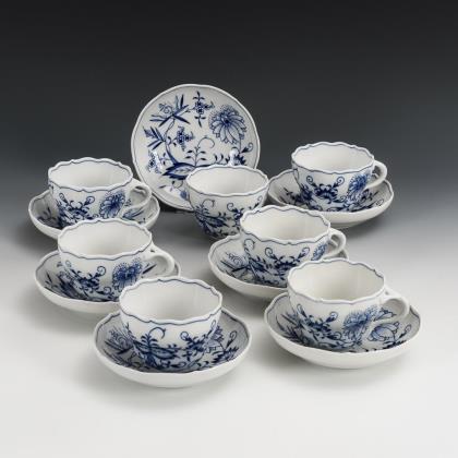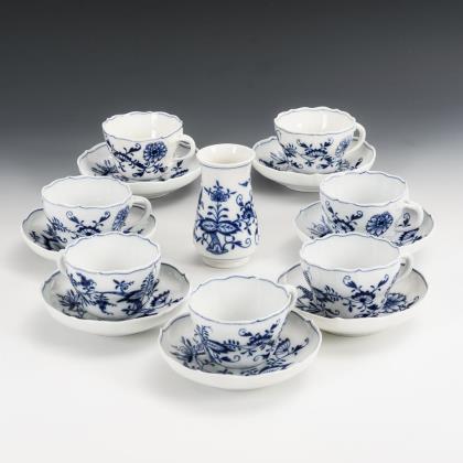 7 Zwiebelmuster-Tassen und 1 -Vase