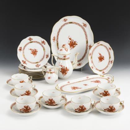 40 Teile. Kaffeekanne (H 27 cm), Teekanne (H 16 cm), Milchkännchen, Zuckerdose, 12 Teetassen, 12 Untertassen und 12 Frühstücksteller