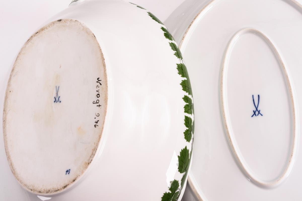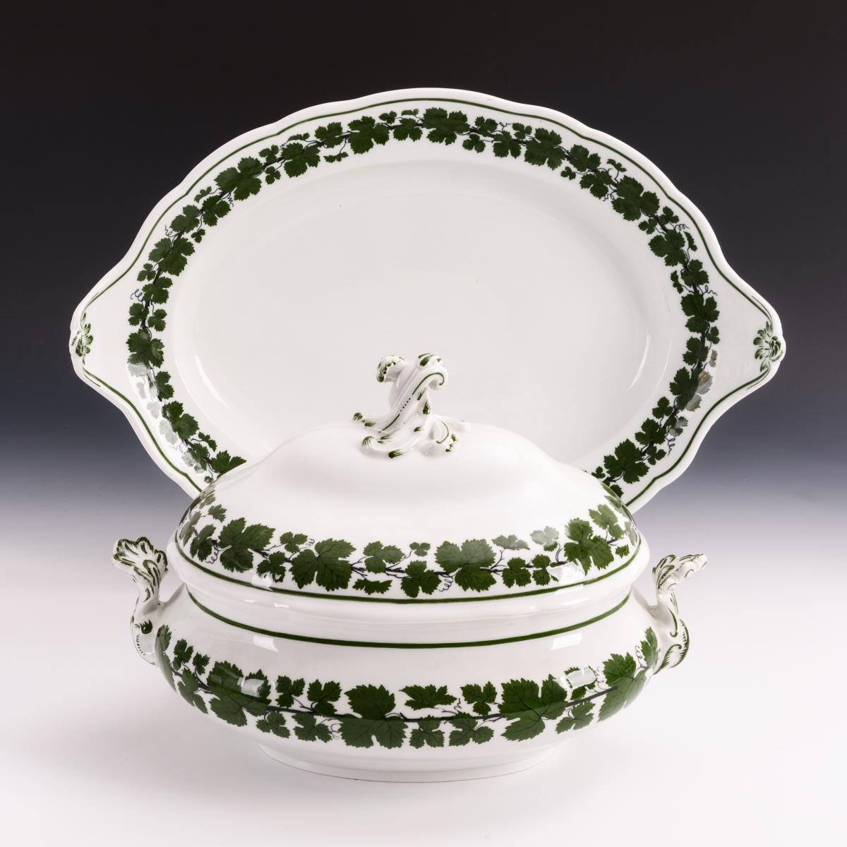 Unterglasurgrüne Weinlaubmalerei. L Terrine 37 cm, L Presentoir 50,5 cm.