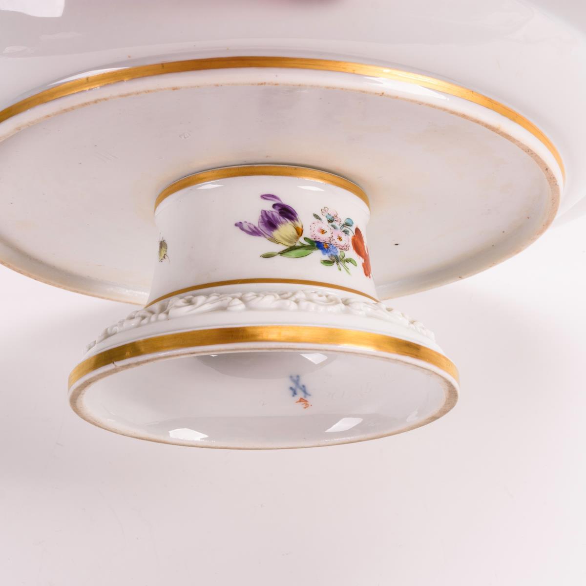 Tafelaufsatz mit Blumen- und Insektenmalerei. Meissen.
