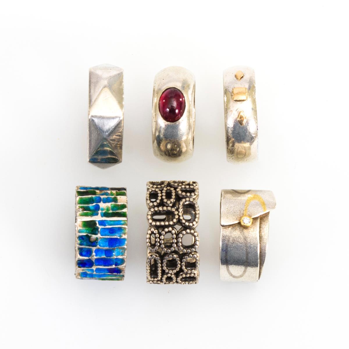 Mittlere bis breite Bandringe, u.a. mit Steinbesatz, Durchbruchdekor und Email.