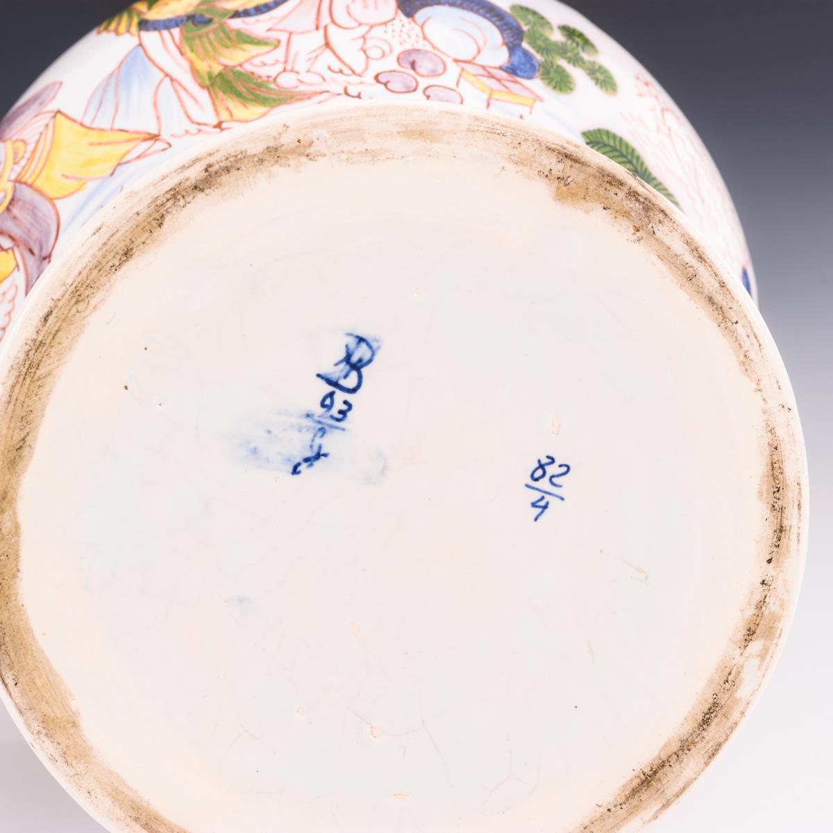 Weiß glasiert, polychrome Scharffeuerfarbenbemalung. H 40 cm.