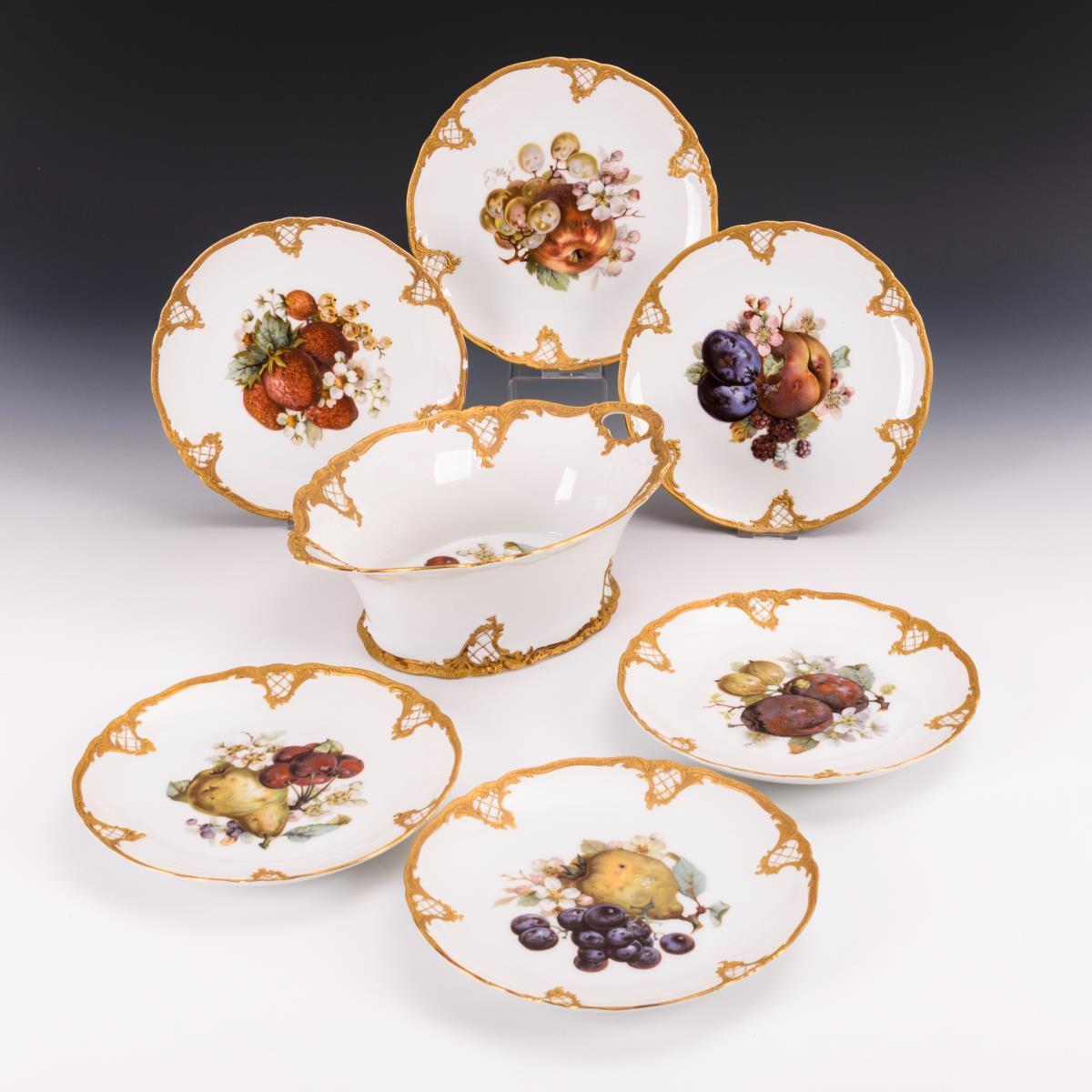6 Teller und Schale mit Fruchtdekor. Fürstenberg.