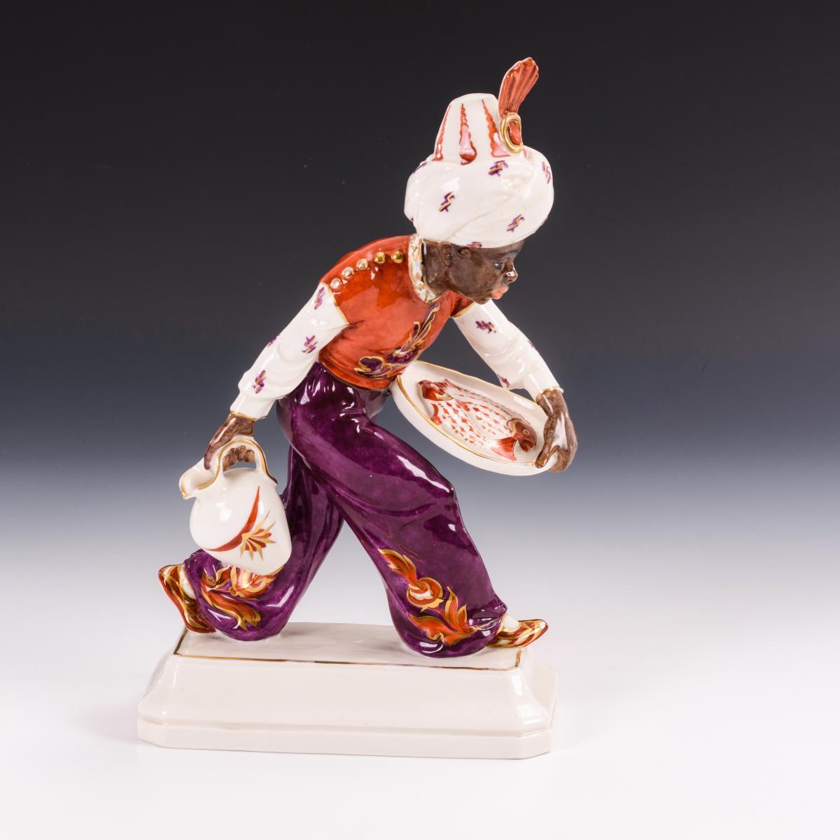 Mohr mit Fischtablett und Krug. Schwarzburger Werkstätten.