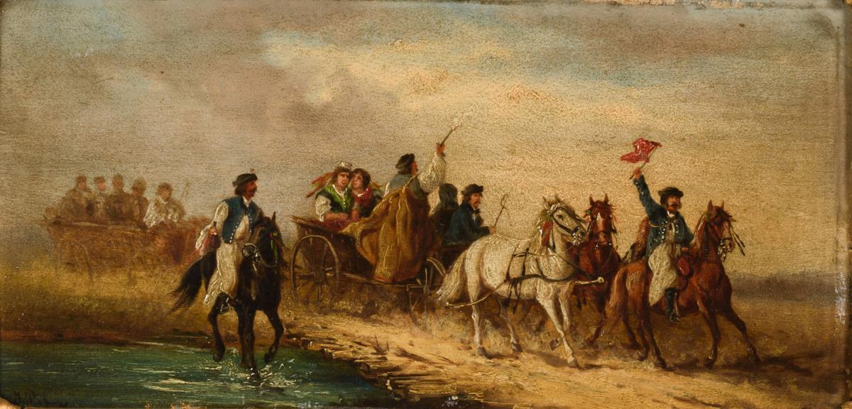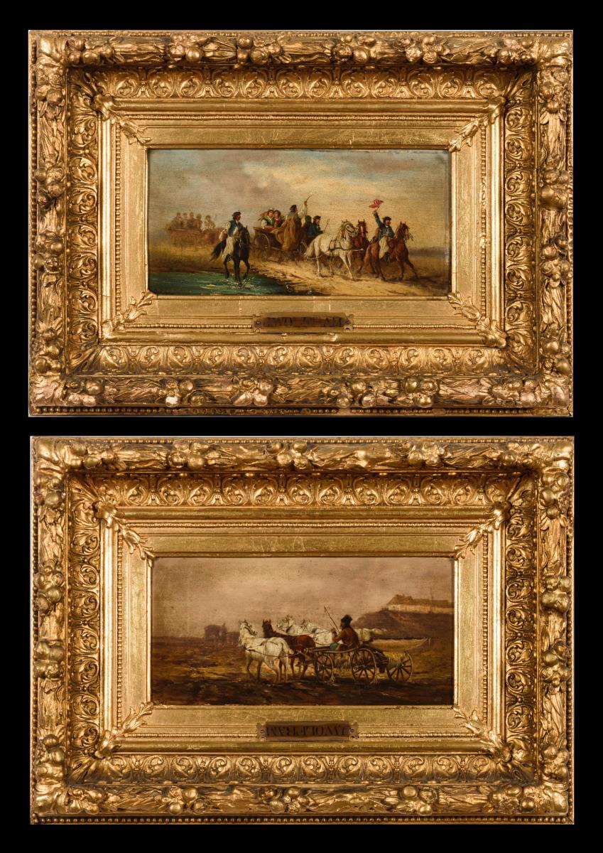 Je Öl/Holz. Je links unten monogrammiert, verso einmal als "Heimkehr vom Markte" betitelt. Je 2. Hälfte 19. Jh..