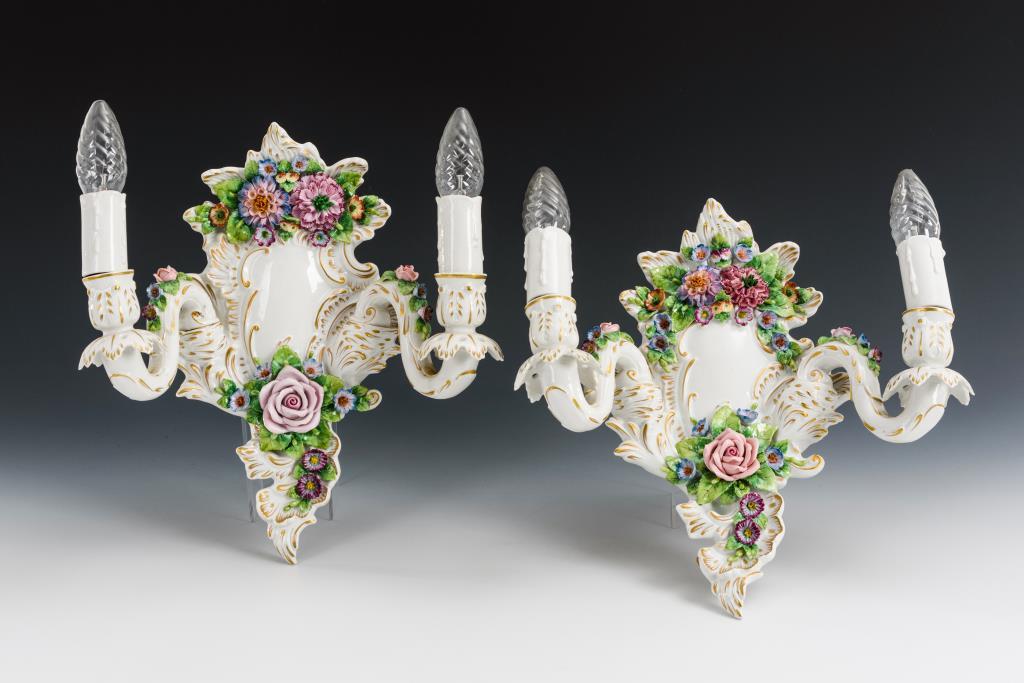2-flammige, reich blütenbelegte Rocailleleuchter. Verkabelt .