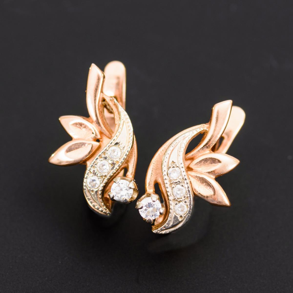 Russisches Ohrsteckerpaar mit farblosen Steinen.