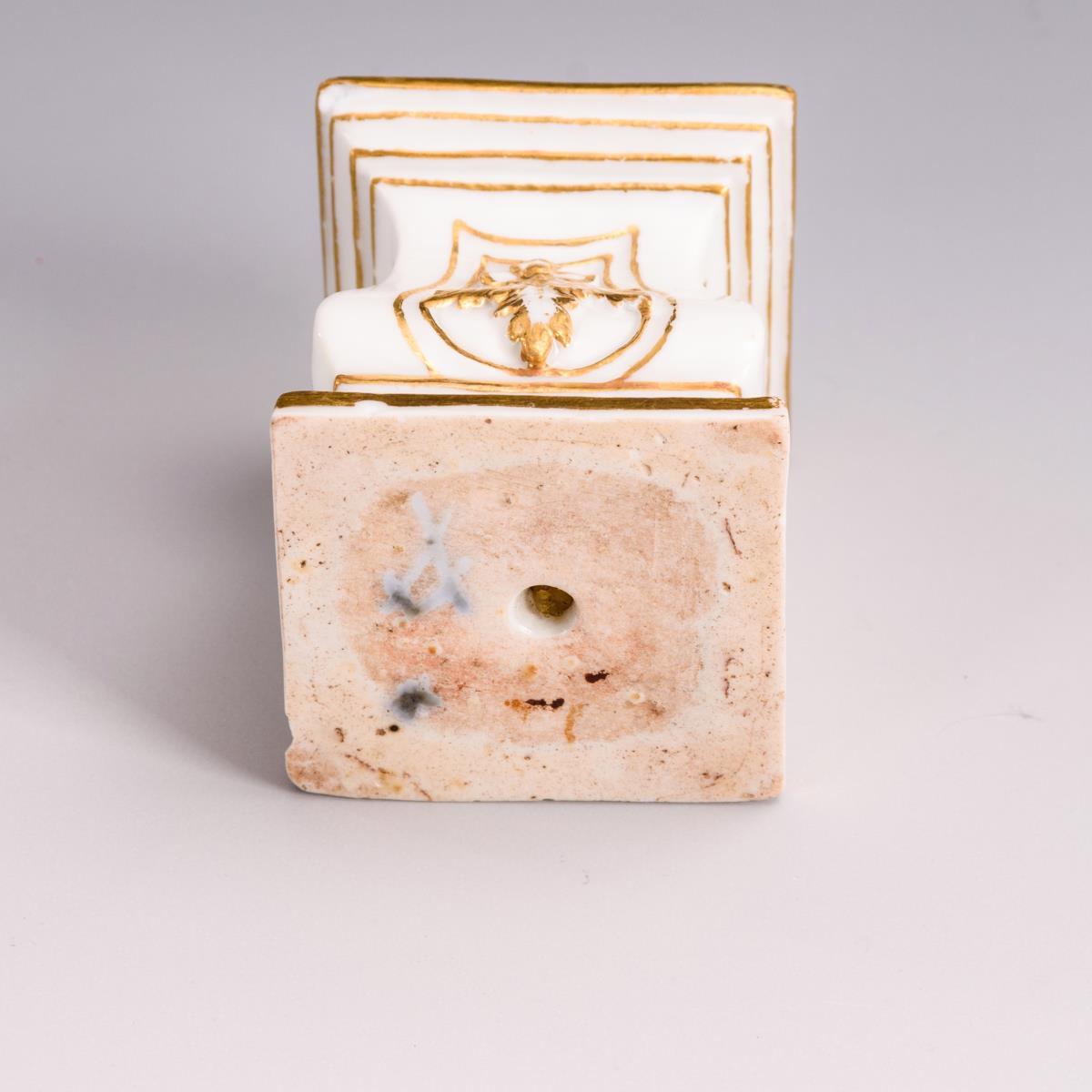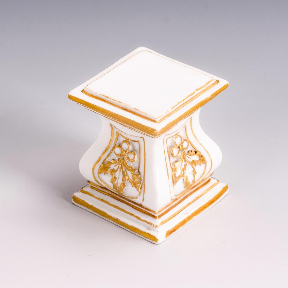 1x auf einem Sockel ruhende Büste einer mythologischen Figur (H 8 cm). / 1x Sockel mit Blattrelief (H 4 cm). 2 Bestoßungen am Stand des einzelnen Sockels.